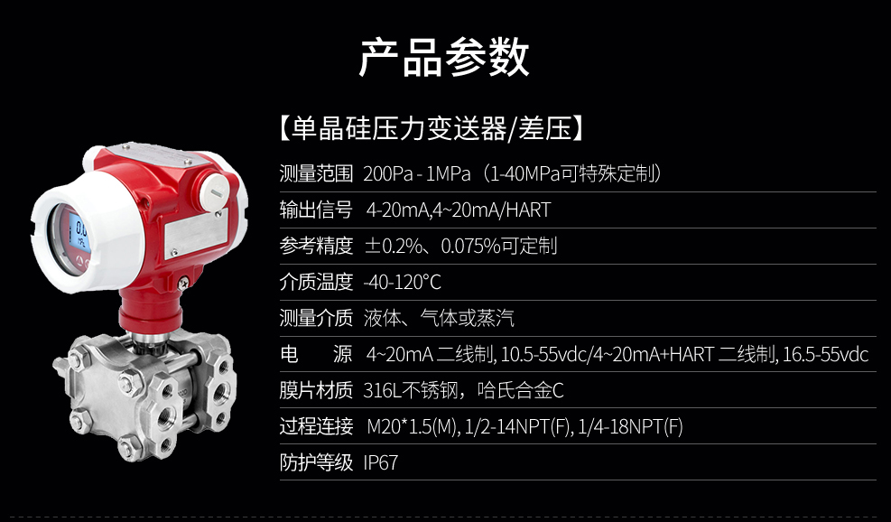 聯測SIN-P2051-S單晶硅差壓變送器,差壓安裝式表壓/絕壓變送器用于測量液體、氣體或蒸汽的液位、密度、壓力,然后將其轉變成4~20mADC HART電流信號輸出。采用先進的高精度單晶硅技術,測量精度高達0.075級,特有的雙過載保護膜設計,單向過壓高達40MPa.