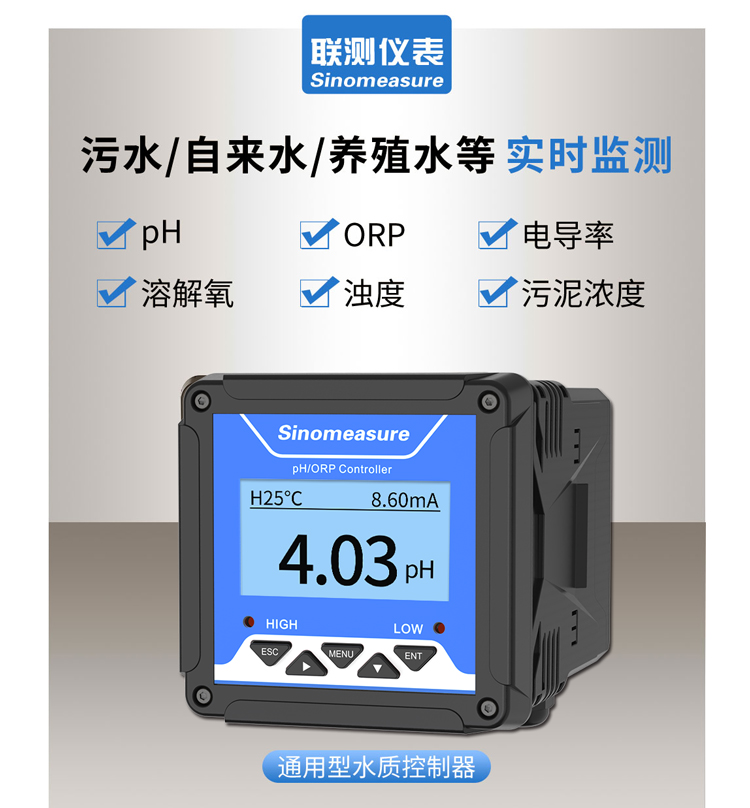 以客戶需求為出發(fā)點(diǎn),聯(lián)測推出新品水質(zhì)通用型控制器DC2000,可用于監(jiān)測pH、ORP、電導(dǎo)率、溶解氧、濁度、污泥濃度等水質(zhì)參數(shù)。