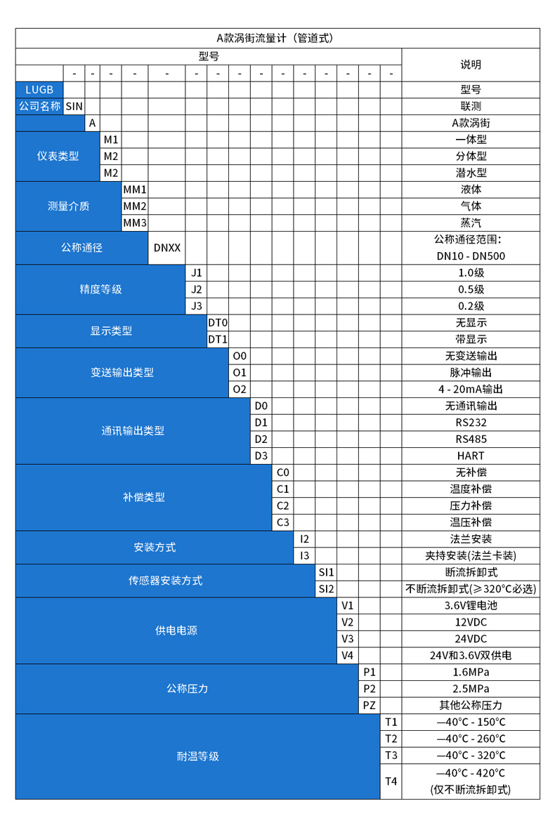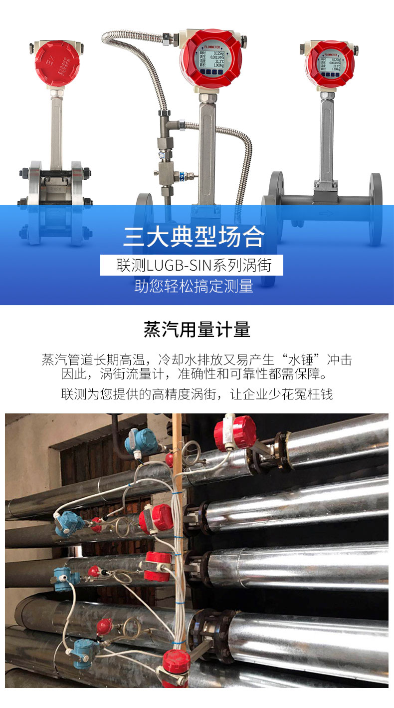 LUGB-SIN-A渦街流量儀表廣泛用于供熱公司、熱力公司、化工行業(yè)等行業(yè),對過熱蒸汽、飽和蒸汽、壓縮空氣和一般氣體、水和液體的計量和控制。加厚本體,可有效避免現(xiàn)場管道振動帶來的數(shù)據(jù)波動和誤差。多用于高溫場合,例如過熱蒸汽等工況。